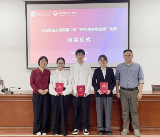 为提升我院研究生马克思主义理论学科专业能力,展现学生学习思政课的理论素养和精神风貌,搭建展示自我和交流学习的实践平台,5月8日,999策略手机论坛版以“建设教育强国,提升思政引领力”为主题,在学院325报告厅举行第二届“研究生讲思政课”比赛。比赛邀请999策略手机论坛版党委书记徐惠老师、陆春晖老师、汪宏老师、许醴老师、庞东霞老师担任评委,全体研究生参加。