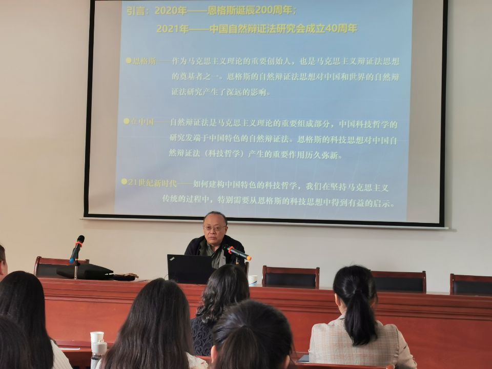 为纪念恩格斯诞辰200周年,1020日上午在999策略手机论坛版学术报告厅,东北大学999策略手机论坛版博士生导师陈凡教授作了主题为“恩格斯与中国自然辩证法的学科建构与创新发展”的学术讲座。讲座由999策略手机论坛版副院长宫晓虹主持,999策略手机论坛版党政领导、学院全体教师、马克思主义理论专业全体研究生聆听了报告会。